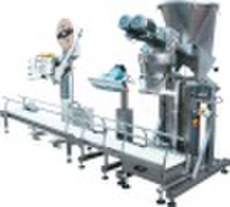 Name: 25kg Weighing & Filling Machine(powder packing machine, grain packing machine) Model No: WAF-1050 Practical and Innovative Design Humanization design, easy to disassemble to clean product contact parts for without tools. Leave no corner, particularly suitable for food packing industry. This entireprocess takes one person one minute to complete is very labor and time efficient. Double screw feeders with inverter control, fast with high accuracy. Innovative clamp, leaves no powder leaking. Innovative structure design makes the machine small, save you costs on installation and maintenance. Excellent performance: reliable PLC control,high-quality weighing system, international brand electrical equipments to ensure 24 hours continuant work.Application: Appliable to food, pharmaceutical, forage and chemical industries. Appliable to powder and small grain set-quantity packaging, such as milk power, MSG, agriculture products, forage, metal powder, plastic particals and various chemical raw materials.Optional Component:Sewing Machine >>Film Heating & sealing machine or Nitrogen-jet vacuum-sealing film machine, >>Conveyor belt >>Dumping device >>Bag Former >>Automatic palletizer >>Automatic bag feeder